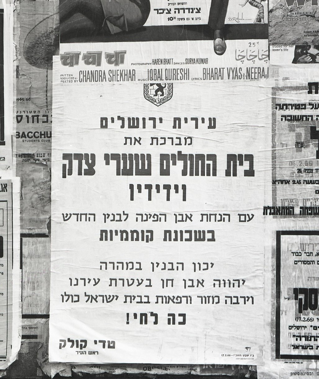 לפי המודעה התברר שהתוכנית המקורית הייתה להקים את הבניין החדש של בית חולים שערי צדק בשכונת טלביה, היא שכונת קוממיות, סמוך לבית הנסן (בית המצורעים). זהו בית האבן שנראה באחד התצלומים, ברקע. התצלום התמים של לוח המודעות תרם לזיהוי חידת המקום, הזמן והאירוע.